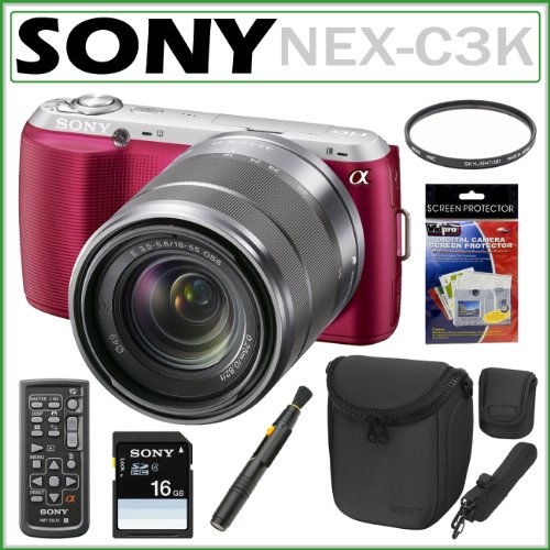 Sony Alpha NEX-C3K 16 MP Compact Interchangeable Lens Digital Camera in Pink with Sony SEL1855 18-55mm Zoom Lens + Sony 16GB SDHC by Sony