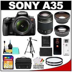 The Sony Alpha SLT-A35 Translucent Mirror Technology Digital SLR Camera Body & 18-55mm Lens with DT 55-200mm Lens + 32GB Card + Description